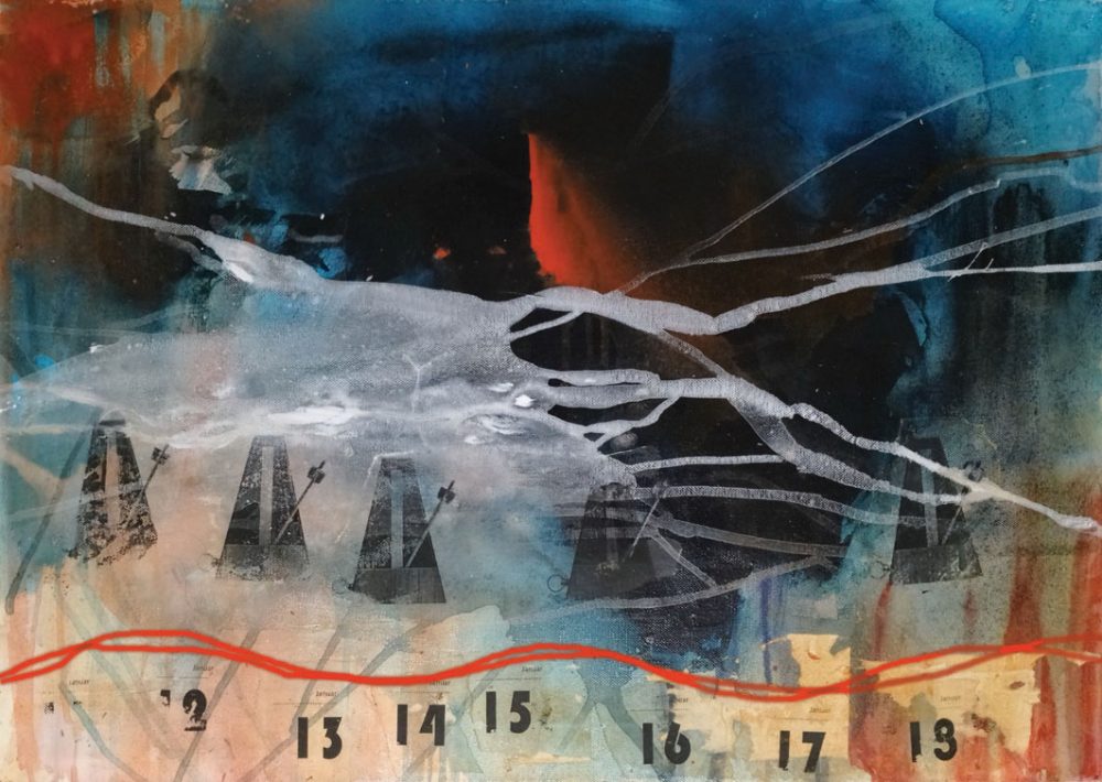 “Sinhronizacija januarskih dana”, 60 x 80 cm, akril na platnu, 2023